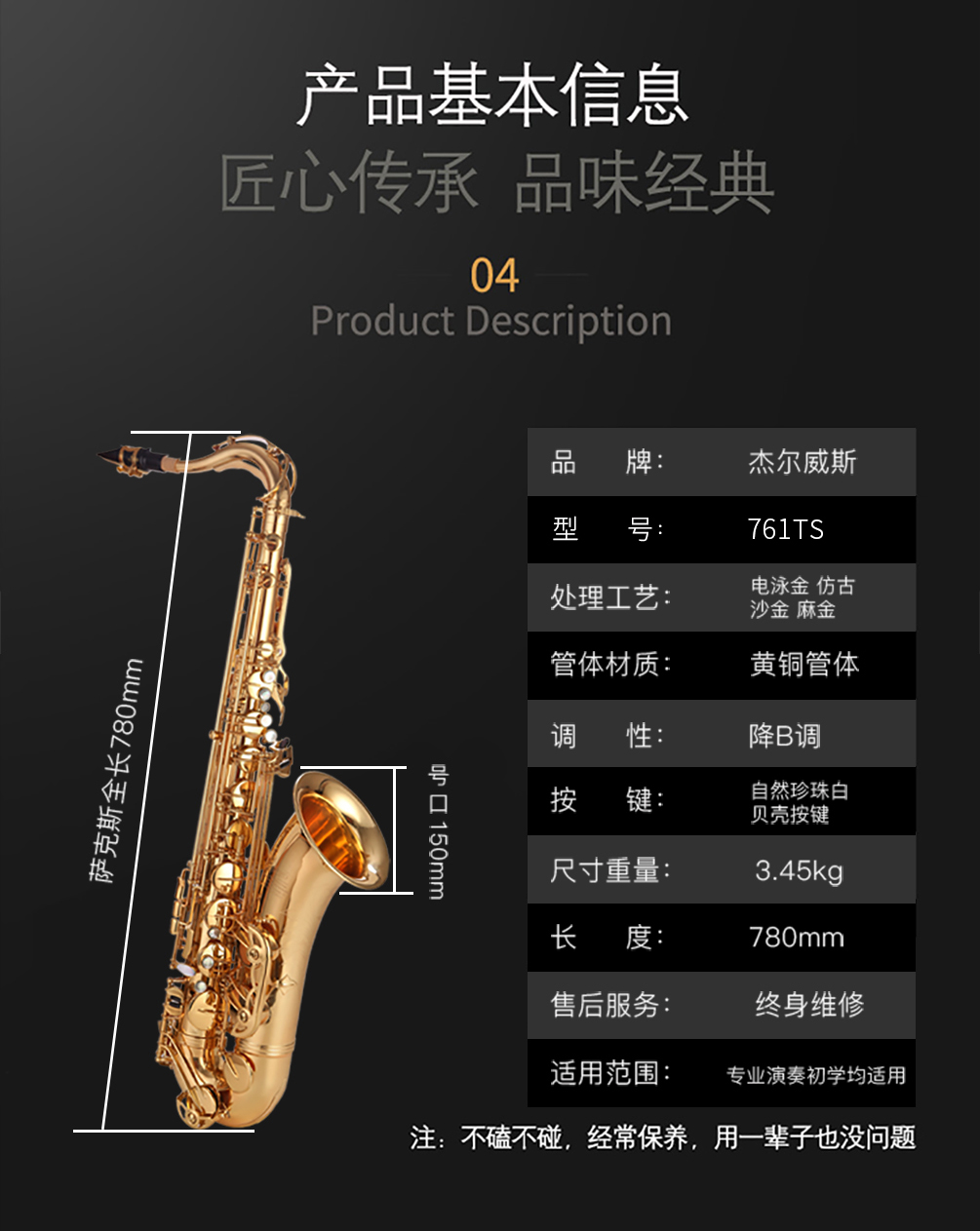 杰爾威斯761-TS次中音薩克斯_降b薩克斯風電泳金款